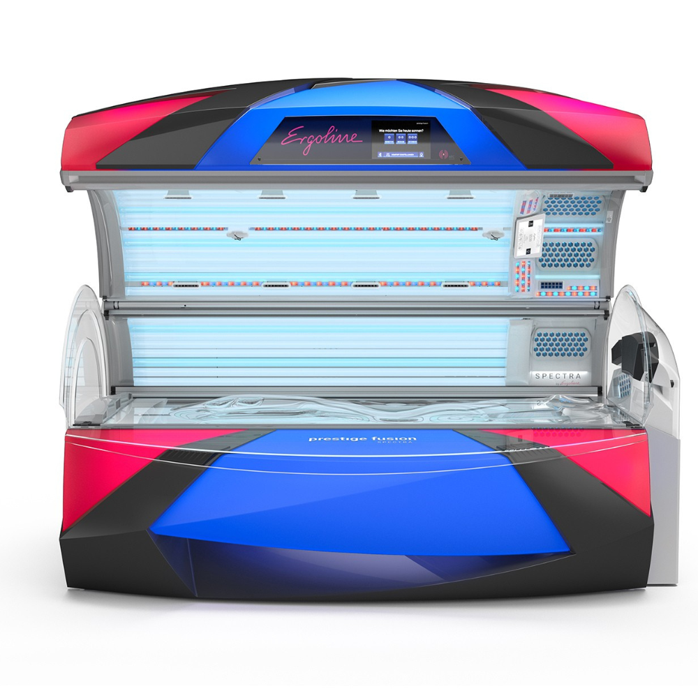 Ervaar het verschil met de nieuwste innovatie in zontechnologie. Fusion Technology combineert blauw Activating Light voor een intens bruiningseffect met rood Beauty Light voor verzorging tijdens het zonnen. Een direct zichtbare, natuurlijke teint én een stralende, goed doorbloede huid – allemaal in één sessie. De Spectra UV LED gezichtsbruiner zorgt voor een zachte en aangename bruining met een WOW effect. Met Personal Sunstyle is de Ergoline Prestige Fusion Spectra geschikt voor iedere zonner.